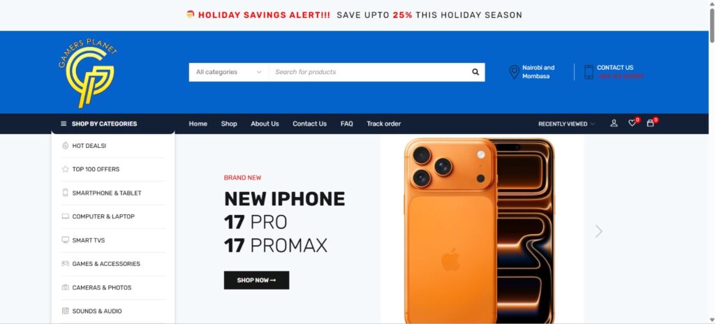 We built an intuitive e-commerce platform for Gamers Planet, one of Kenya’s leading gaming equipment stores. The store features over 300+ product SKUs, secure checkout, M-Pesa integration, stock management, and fast-loading product pages optimized for mobile users. This platform simplified order processing while increasing online sales and customer retention.